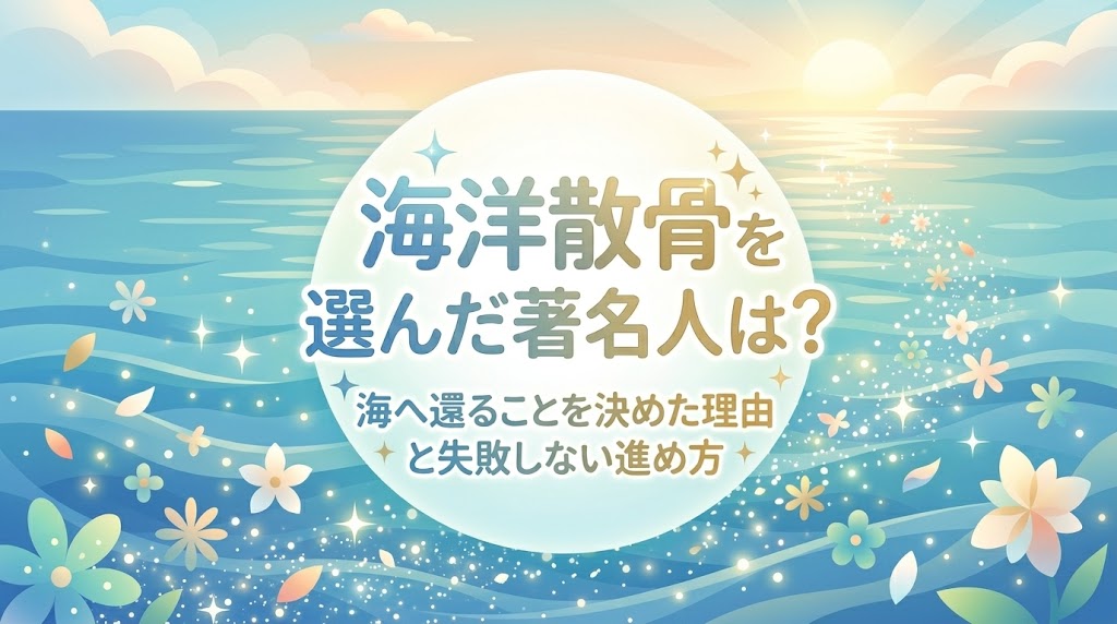 しかし、いざ自分が検討するとなると、「親戚に反対されないか」「お墓がないと寂しくないか」と不安になるものです。この記事では、海洋散骨を選んだ著名人の事例やその理由を紹介しながら、後悔しないためのポイントを詳しく解説します。